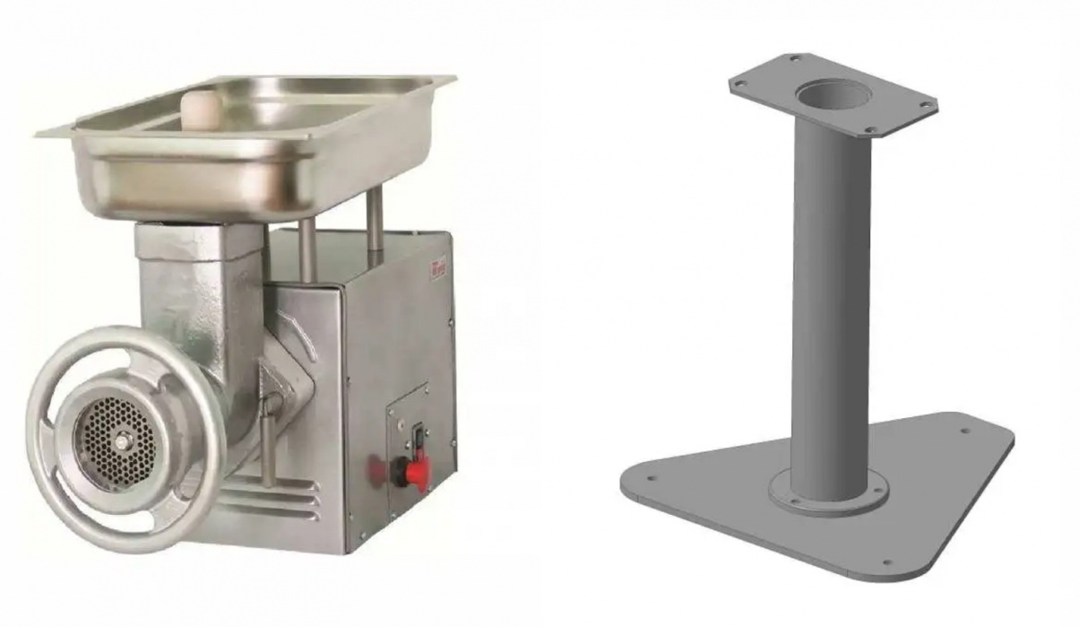 Торгмаш, Пермь (10) Производительность техническая, 600 кг/час. Производительность при повторном измельчении фарша 200 кг/час. Частота вращения шнека 250±10 об/мин. Наружный диаметр ножевых решеток 105 мм. Диаметр отверстий ножевых решеток 5, 9 мм. Питающая электросеть: род тока трехфазный переменный, номинальное напряжение 380В, номинальное значение частоты тока 50 Гц. Номинальная мощность электродвигателя 2,2 кВт. Габариты: 750х340х500 мм. Масса 75 кг. Мясорубка предназначена для измельчения мяса и рыбы при производстве фарша для различных мясных, рыбных и колбасных изделий на предприятиях общественного питания (столовые, кафе, рестораны), в малых колбасных цехах и фермерских хозяйствах. Мясорубка оснащена функцией "Реверс", которая позволяет при наматывании жил освободить шнек без дополнительной разборки. В состав изделия входит: приводной механизм – для приведения в действие насадки-мясорубки, подставка П-01, насадка-мясорубка – для приготовления мясного и рыбного фарша, комплект ножей "полный унгер".