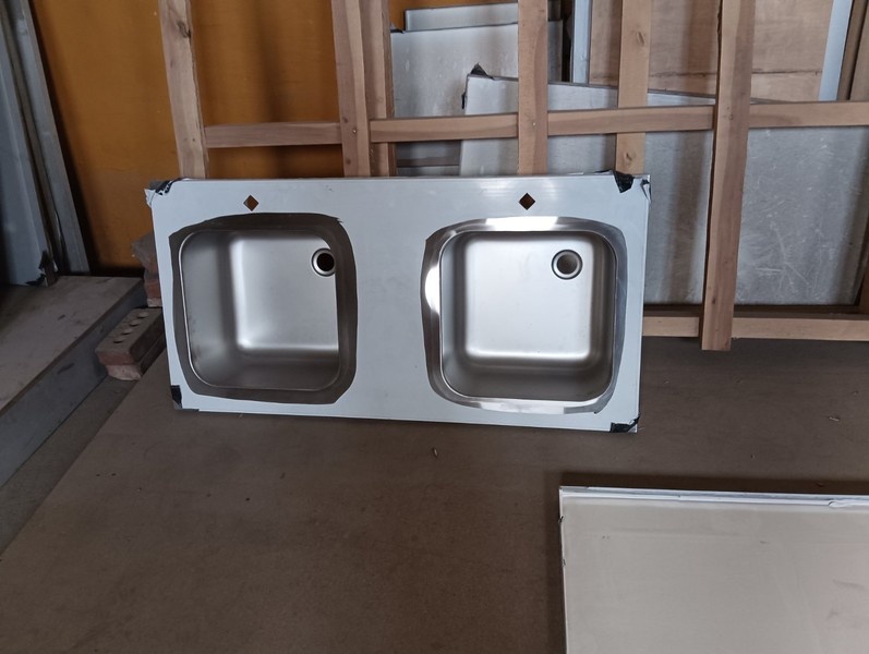 - Под каждую мойку в задней части стола выбиты прямоугольные отверстия под коммуникации;