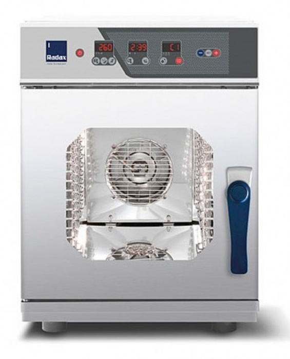 Radax (44) Пароконвектомат Radax серим TURGENEV предназначен для готовки широкого спектра блюд, выпечки хлебобулочных и кондитерских изделий в гостиницах, ресторанах, пищевой промышленности и торговле. У него есть левосторонняя дверь с двойным остеклением и электронная панель управления.